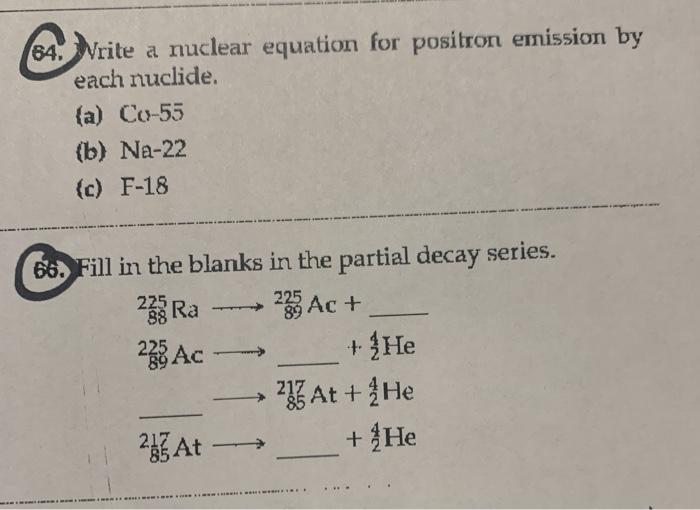 Solved Write A Nuclear Equation For Positron Emission By Each Nuclide A Co 55 B Na 22 C F 18